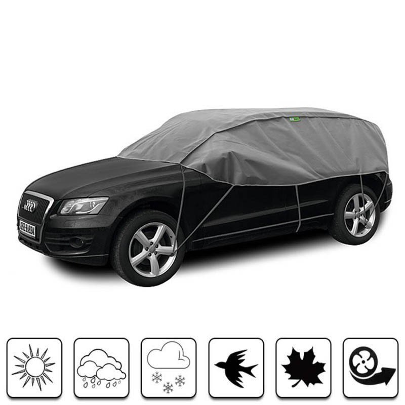 Protegerá su vehículo contra todotipo de agresionesexternas, tanto en veranocomo en invierno: sol, rayos UV, nieve, heladas, lluvia, viento, hojas, savia, polen, excrementos de pájaros...